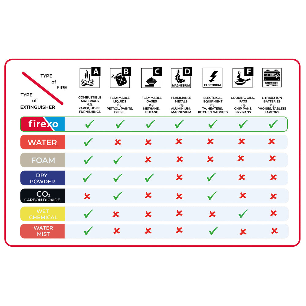 Die Feuerlöscher mit FIREXO-Technologie wurden speziell entwickelt, um solche Brände schnell und sicher zu löschen – und das mit nur einer Lösung für mehrere Brandklassen.